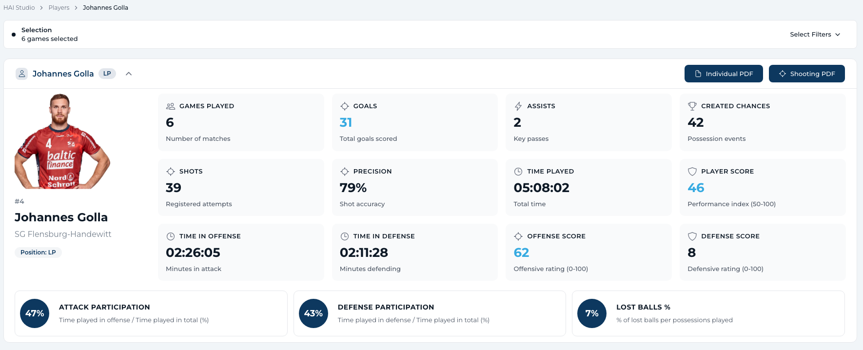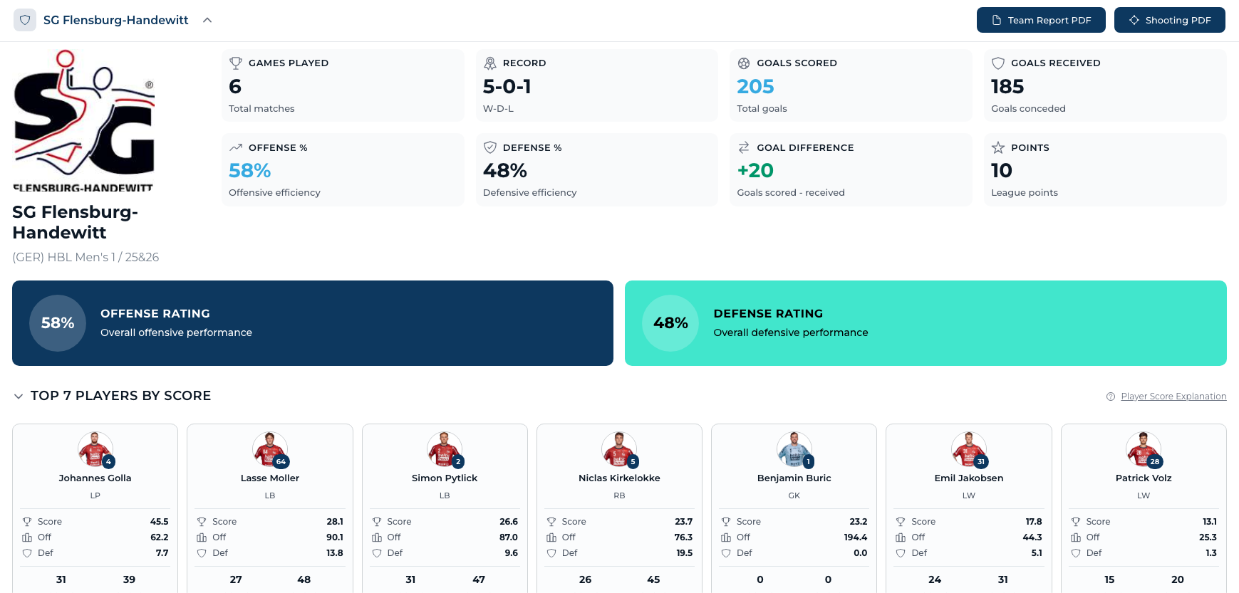 The most advanced handball analytics platform. AI-powered insights, real-time statistics, and comprehensive scouting tools for handball teams.